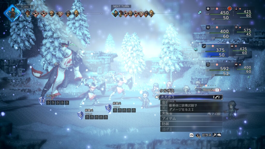 お供を倒したあたりの途中経過、いつも通り命中デバフを2回かけています。