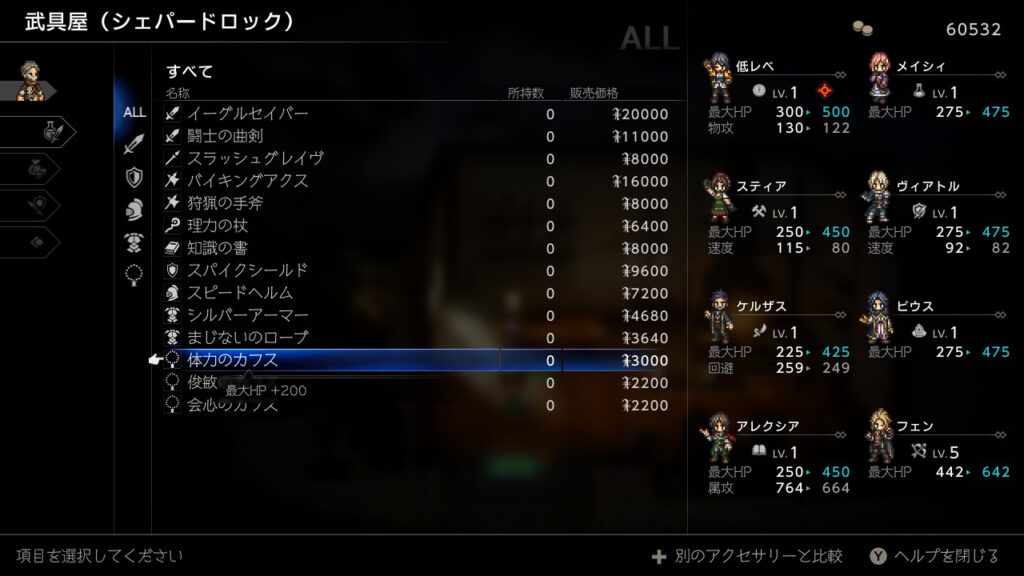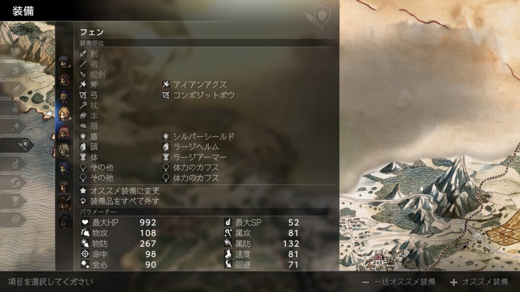 これでHPを盛ることにしました、あって損はないので装備枠が余っているやつには2個装備させました