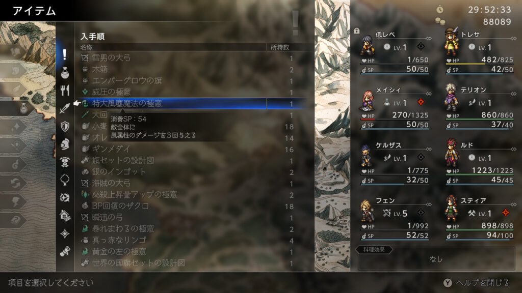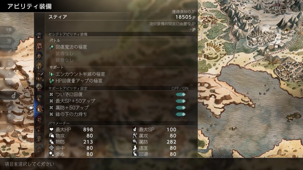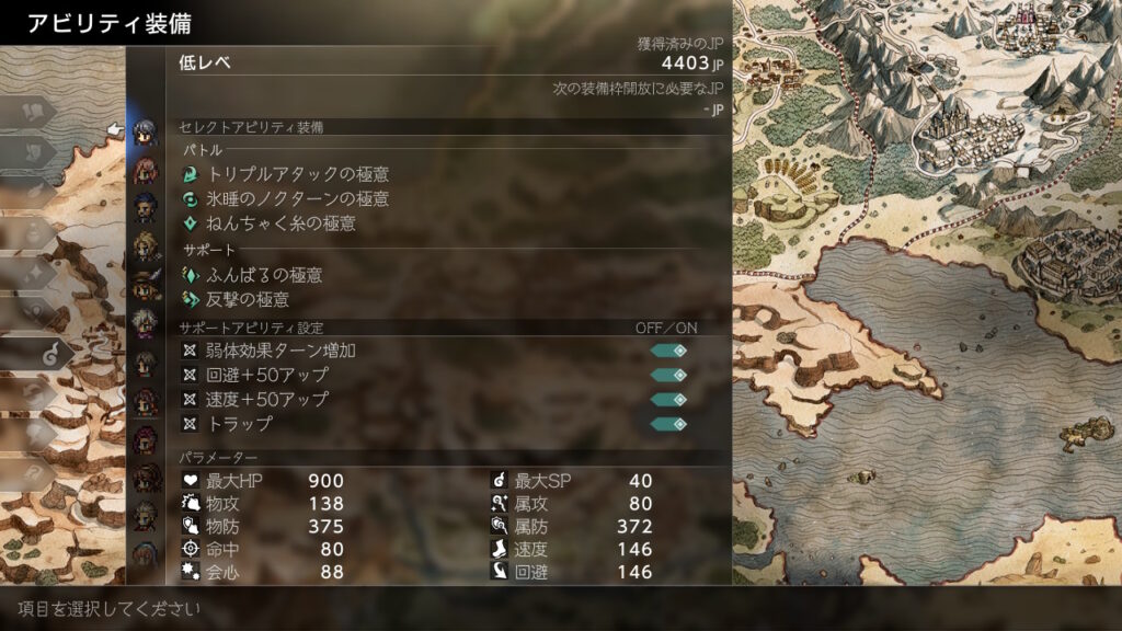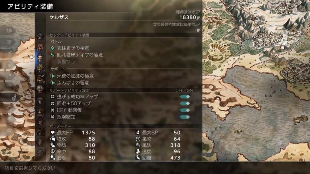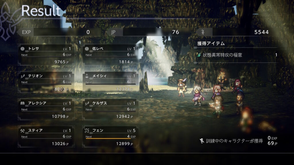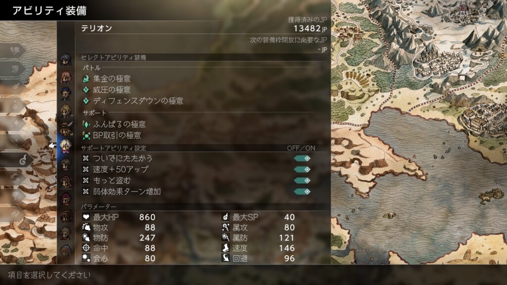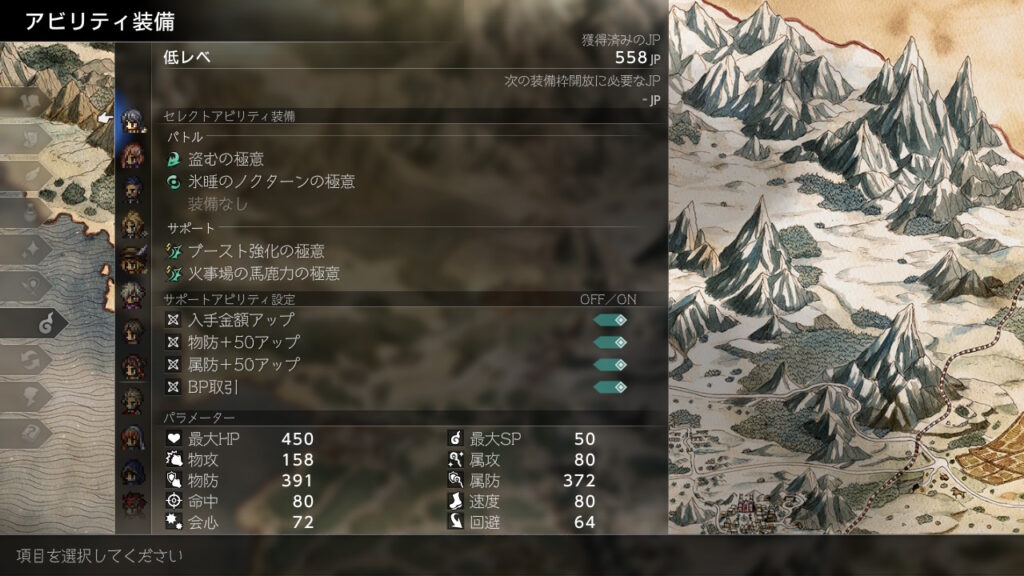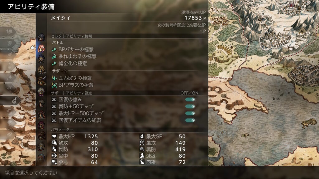 後はJP稼ぎで金策の成功率を上げるためにもふんばるを前衛分は極意化して装備させています。