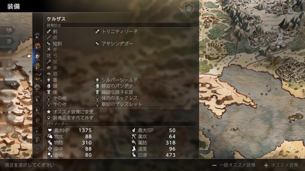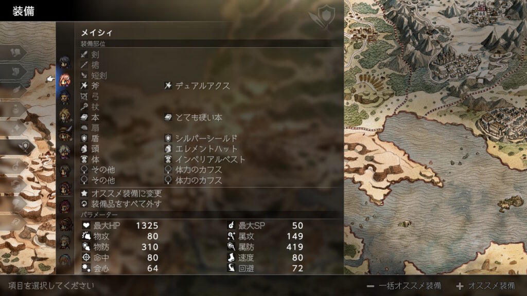 ここからは各キャラの装備紹介です(割と適当です)