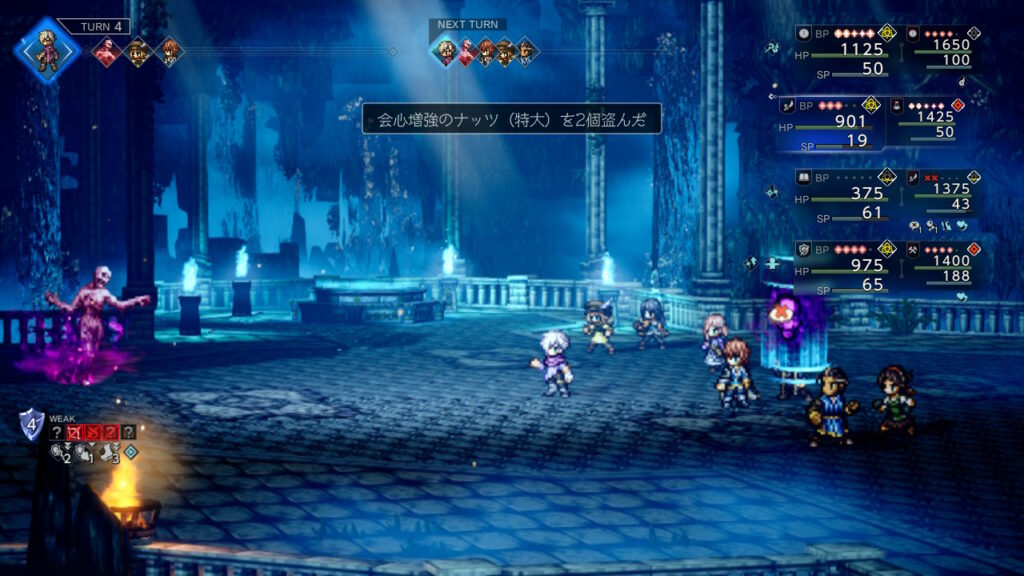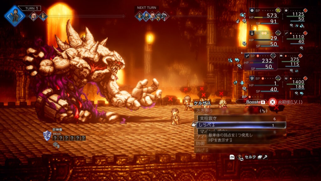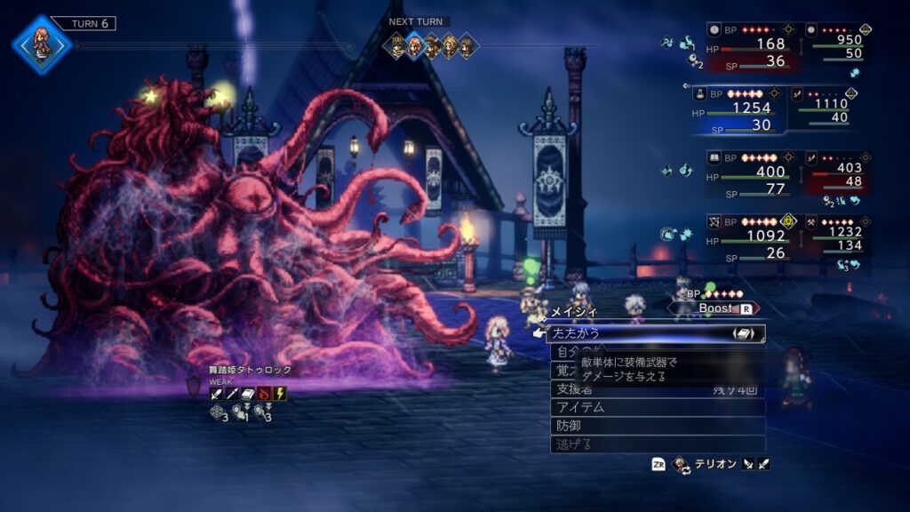 それぞれの弱点開示、お供がかばってくるので先にこいつを何とか落としましょう、毎ターンタトゥロック自身がお供から吸収してくるのとHP自体がそこまで(最近の敵基準)なのでブレイクさえできれば大したことはありません。