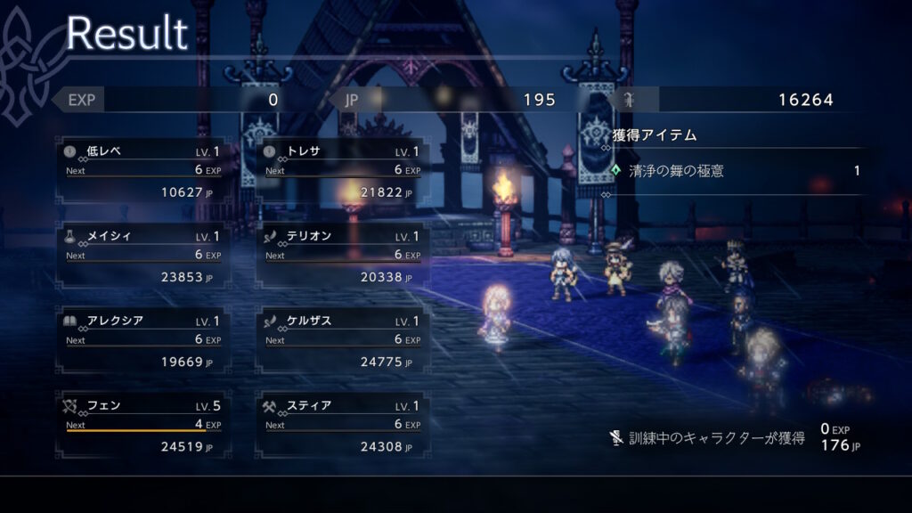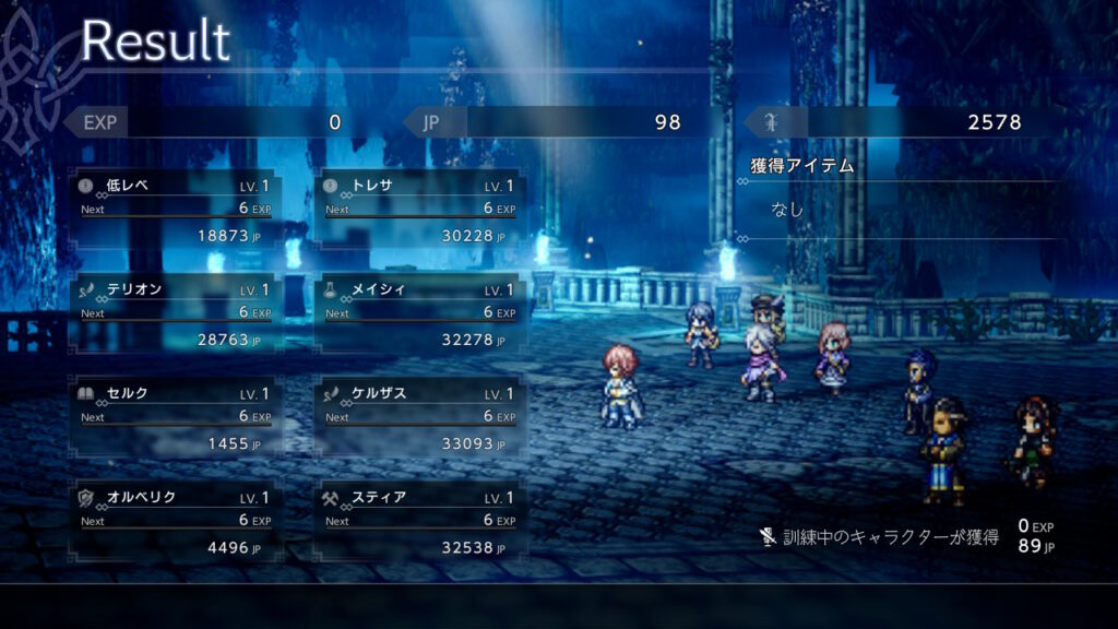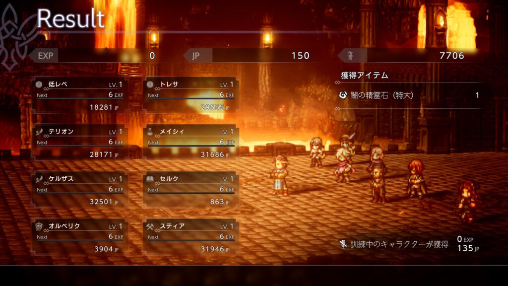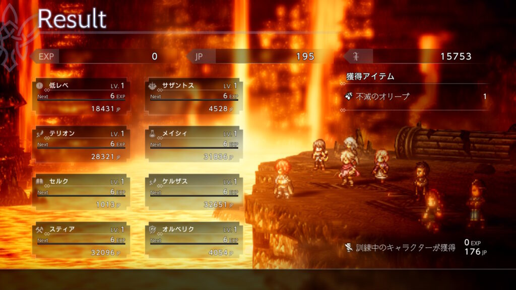 パーティーが少し変わっているので完全なるレベル1軍団での撃破リザルト